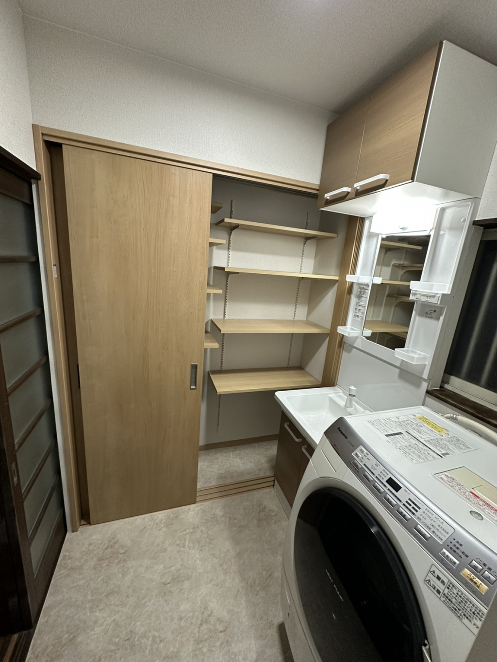 脱衣場にはデッドスペースを活用して新しく収納スペースを設けました