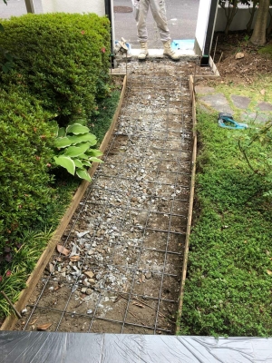 きの根っこがアプローチの下まで入り込みかなりの段差になっていました。いつも歩く場所で、このままでは危ないということで工事に至ました。