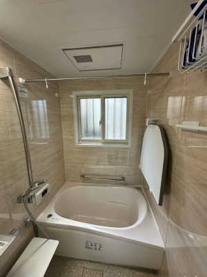 在来工法のお風呂からユニットバスにお取り替え。浴室の窓には内窓をつけて断熱効果を高めました。