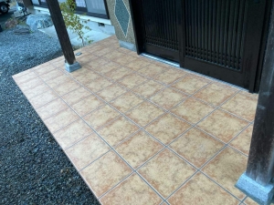経年劣化で剥がれてきていた玄関タイルを全面張り替えました。