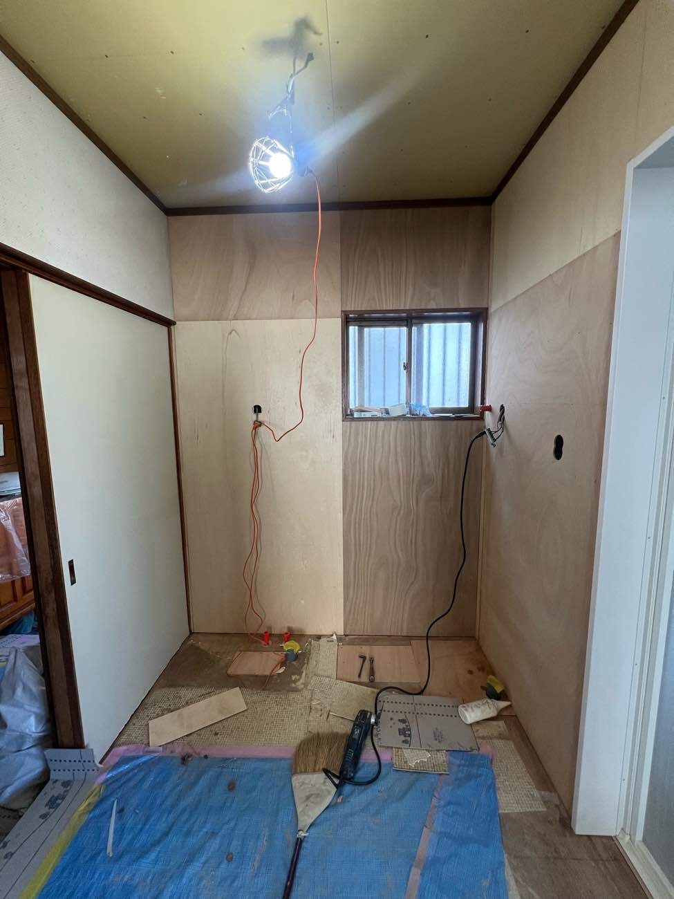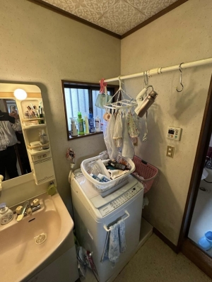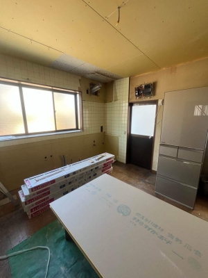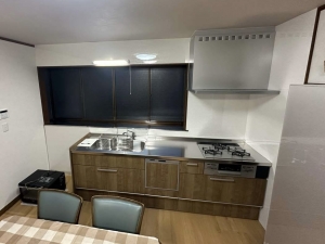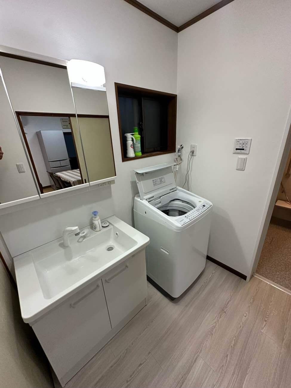 洗面化粧台とキッチンも取り替え、洗面所とダイニングの内装工事を行いました。