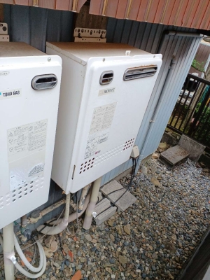 お風呂の給湯器の交換と、庭木の撤去作業を行いました。