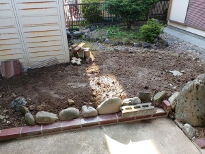お客様から「庭木の手入れが大変になってきた」とのご相談を受け、伐採・伐根までしっかり対応。根っこまできれいに取り除きました。