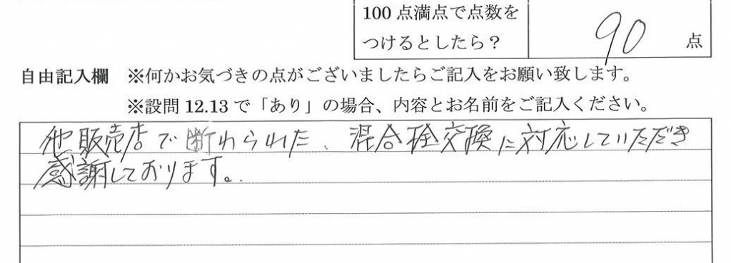 他販売店で断られた混合栓交換に対応していただき