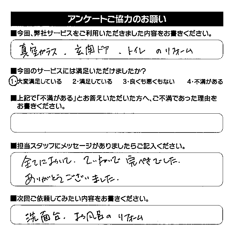 天草市佐伊津町の方よりいただきました。 リフォームのご依頼ありがとうございました。 気に入っていただいたようで、大変嬉しく思います。 また何かございましたら、いつでもご相談下さい。 ありがとうございました。