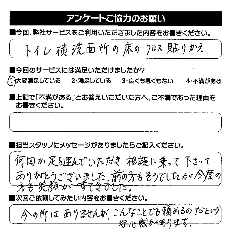また何かございましたら、お気軽にお問合せ下さい。