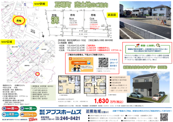 駿河区小鹿の分譲地のご案内です ご新築の際は、ハウスメーカー、工務店をお得にご紹介しております! 【所在地】 駿河区小鹿891付近(C.D区画)/小鹿896付近(E区画) 【土地面積 価格】 A区画 契約済み B区画 契約済み C区画 156.80㎡(47.43坪) 1,880万円 D区画 118.24㎡(33.76坪) 1,790万円 E区画1 13.06㎡(34.20坪) 1,000万円