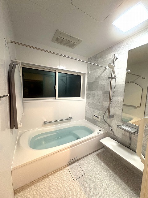冷たいタイル張りの浴室は浴室暖房乾燥機も付けてホカホカの浴室に、そして洗面所は間取り変更をして、ここにも天井に暖房乾燥機を付けました。