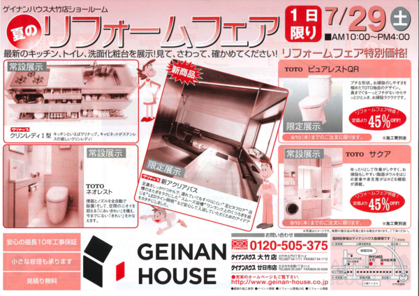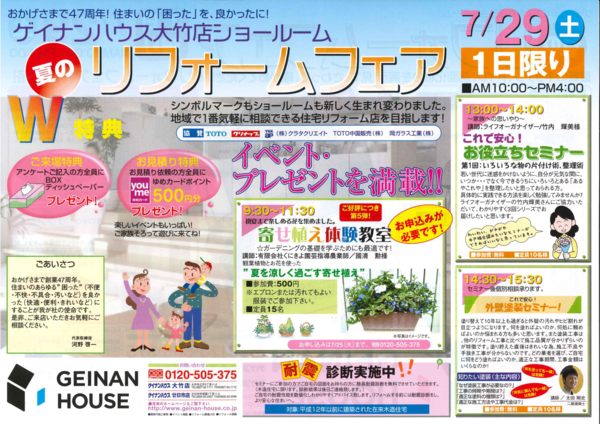 7/29 <大竹地区> 夏のリフォームフェア開催