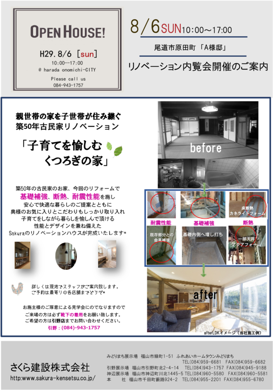 8/6 <福山・尾道地区> 新築・リノベーション完成見学会開催