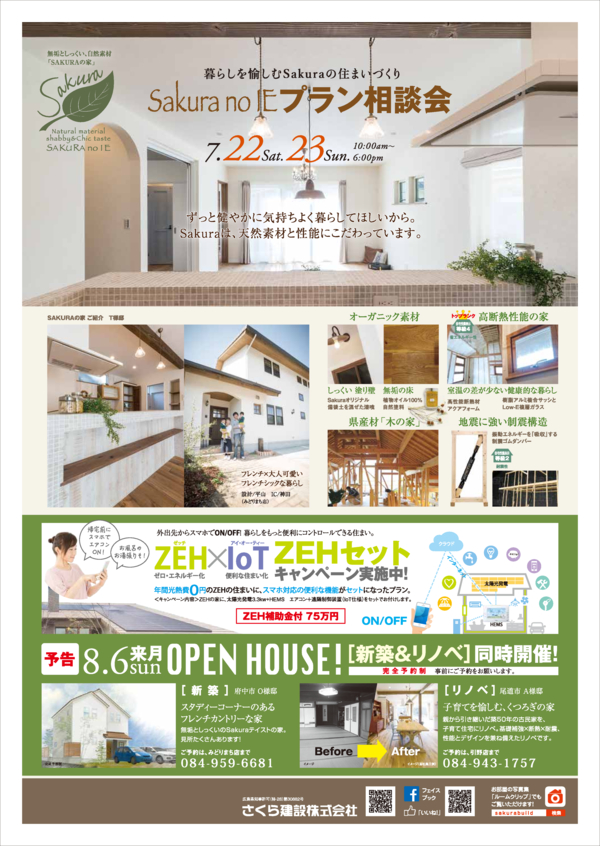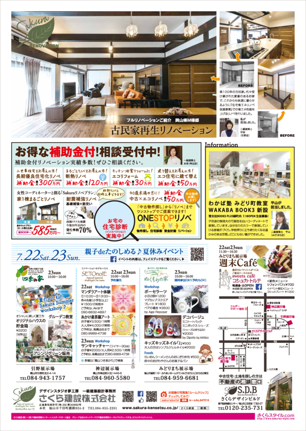 もうすぐ夏休みですね! 週末の予定は決まりましたか? さくら建設各モデルハウスにて愉しいイベントをたくさん企画しております♪ ぜひご家族皆様でご参加ください** ※イベントの内容は各店異なりますので詳しくはチラシにてご確認ください。