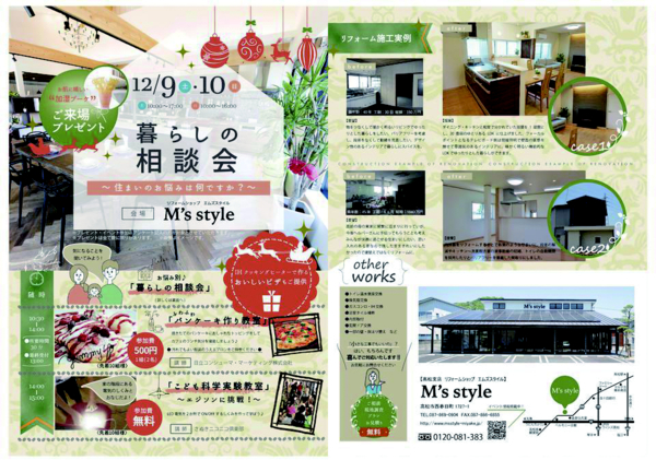 12月9日㈯・10㈰『暮らしの相談会 in M's style』の