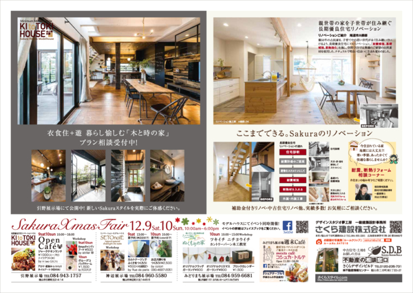 開催日:2017年12月9日(土)、10日(日)10:30~18:00 開催場所:さくら建設㈱ 引野、神辺、みどりまち各展示場