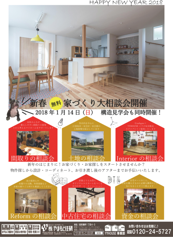 新年明けましておめでとうございます。 新年の始まりにお家づくり・お家探しスタートさせませんか? 物件探しから設計・コーディネート、お引渡し後のアフターまでお手伝い致します。