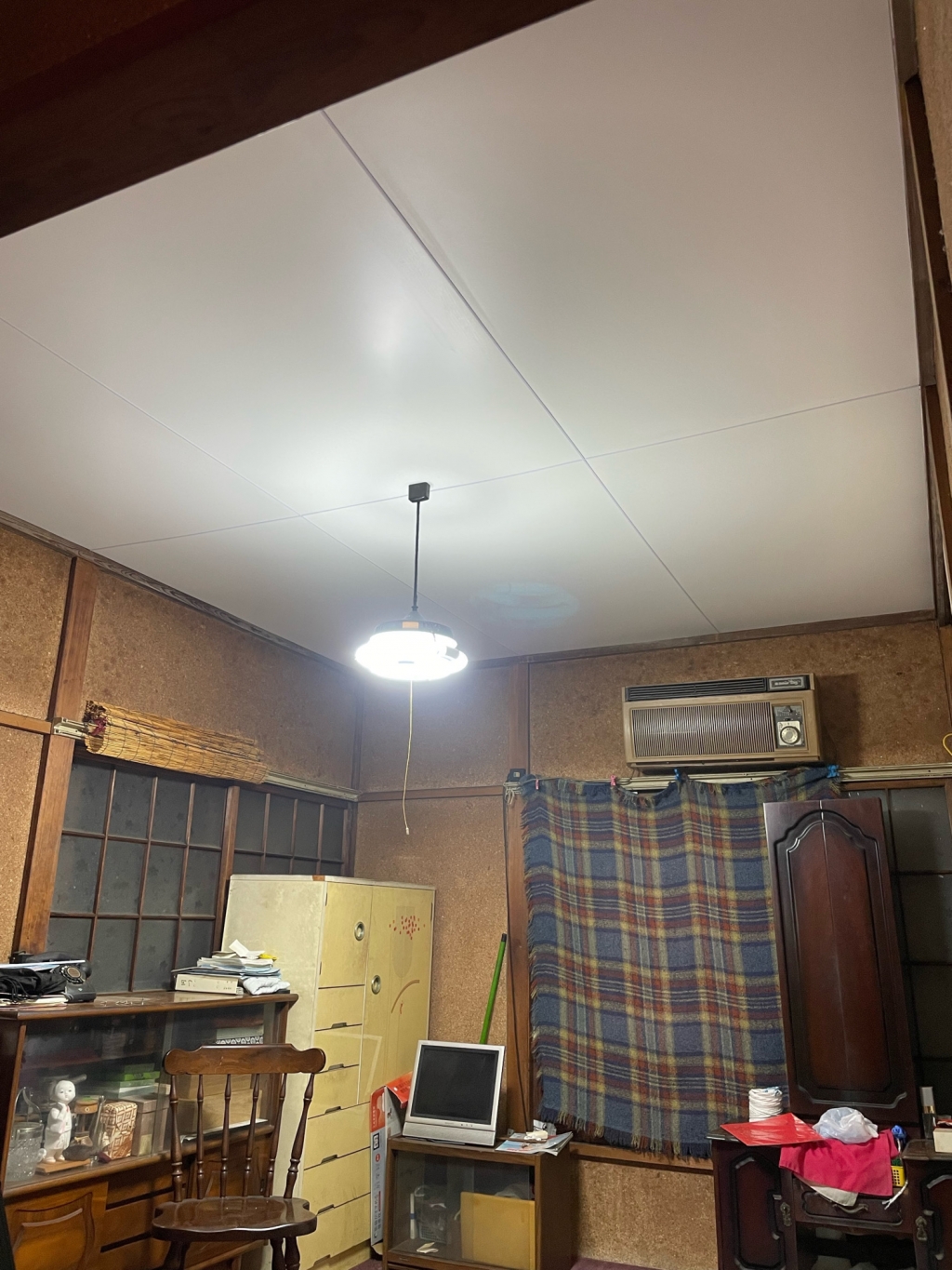 そこで今回は、無理な大規模工事は行わず、白ベニヤを使用したシンプルで実用的な施工方法をご提案。コストを最小限に抑えながらも、見た目が明るくなり、安心して過ごせる空間になることを重視しました。白ベニヤは清潔感があり、部屋全体が明るく感じられるため、高齢の方のお部屋には特に相性の良い素材です。