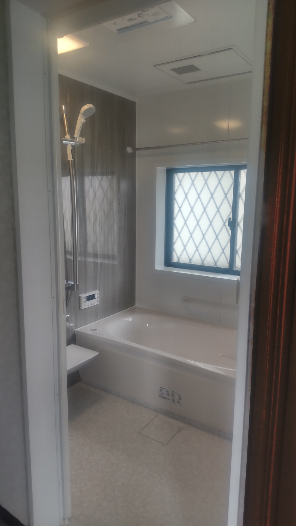 さらに、節水性能にも優れている点は、家計にも環境にもやさしいポイント。使い心地を損なうことなく、水道使用量を抑えられるのは、長く使う設備だからこそ重要です。カラーリングも上品で、浴室全体が明るく清潔感のある空間に仕上がりました。
