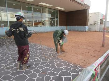 既存コンクリート駐車場を洗浄、補修