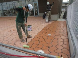 ステンシル目地材を撤去