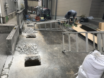 カーポートの柱位置を決め穴を開けます