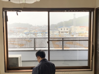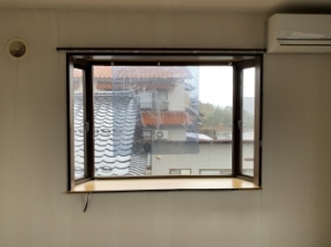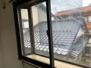 既存の窓の内側に縦枠を入れていきます
