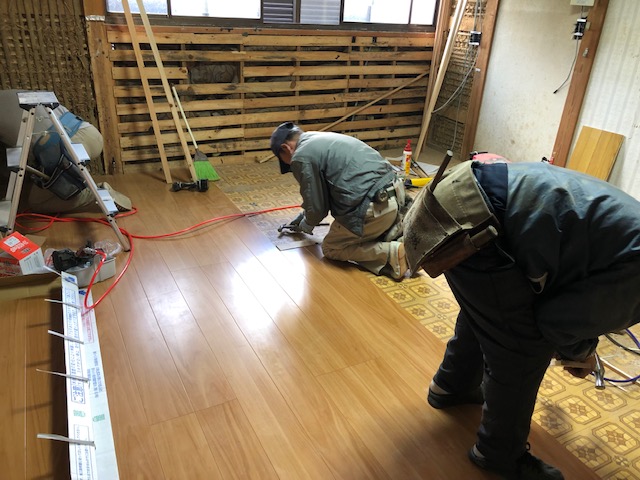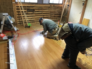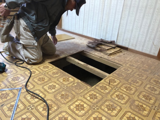 たわみの原因となっていた箇所をコンパネと根太を差し替え補強いたします