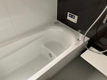 正面がアクセントになるパネル スタイリッシュな浴室となりました。