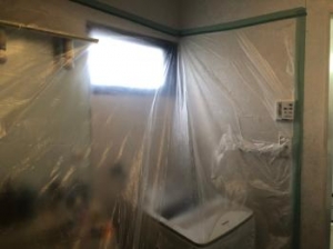 養生を取付けて汚れを防いでいきます