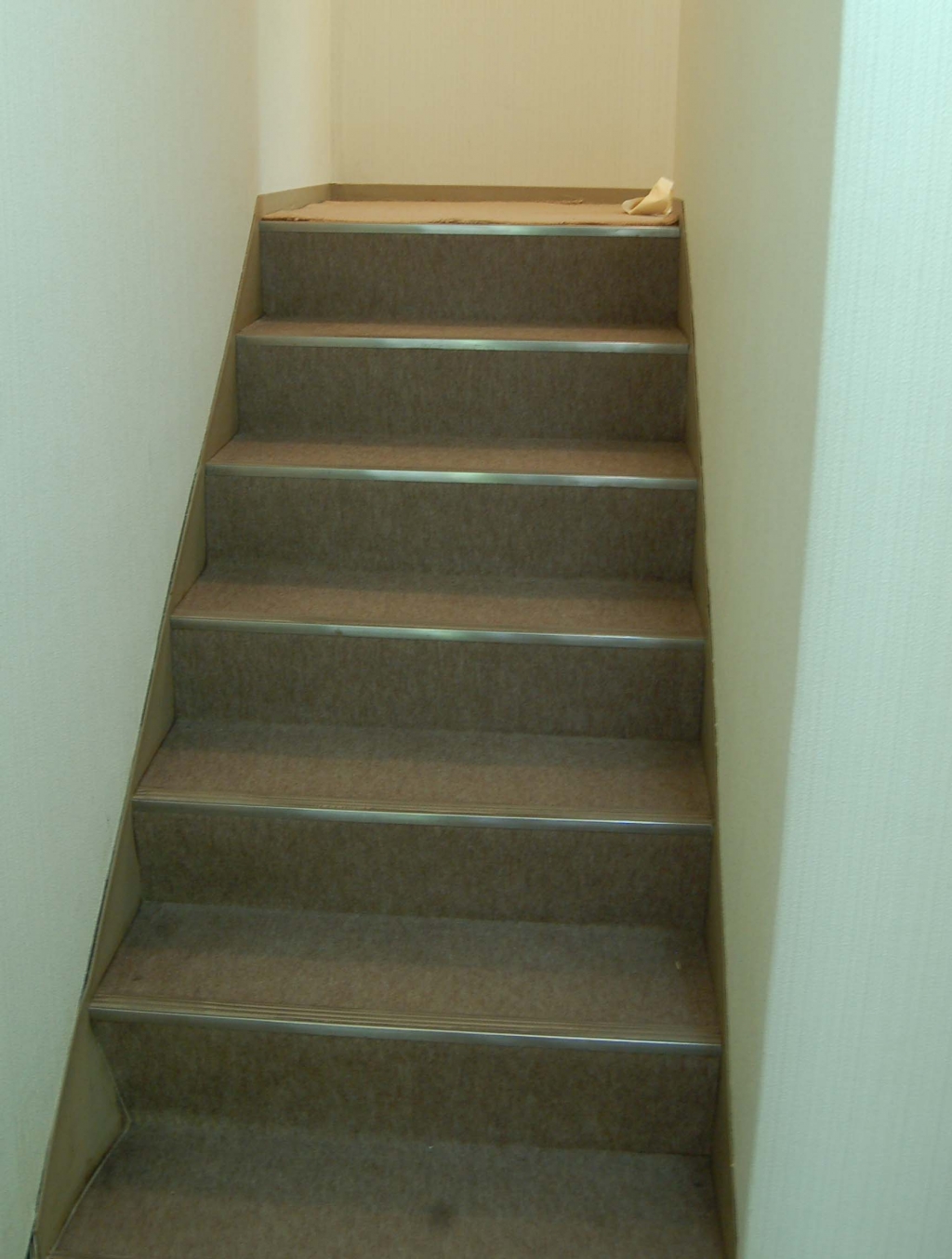 階段はコルクタイルで床材はフローリング貼り変え、クロスも全面貼り変えをご希望でした。