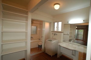 脱衣所には、使いやすい作り付けの棚を設置しました。