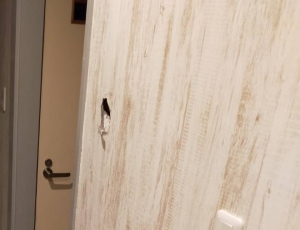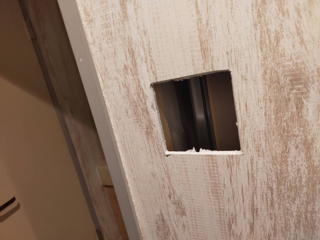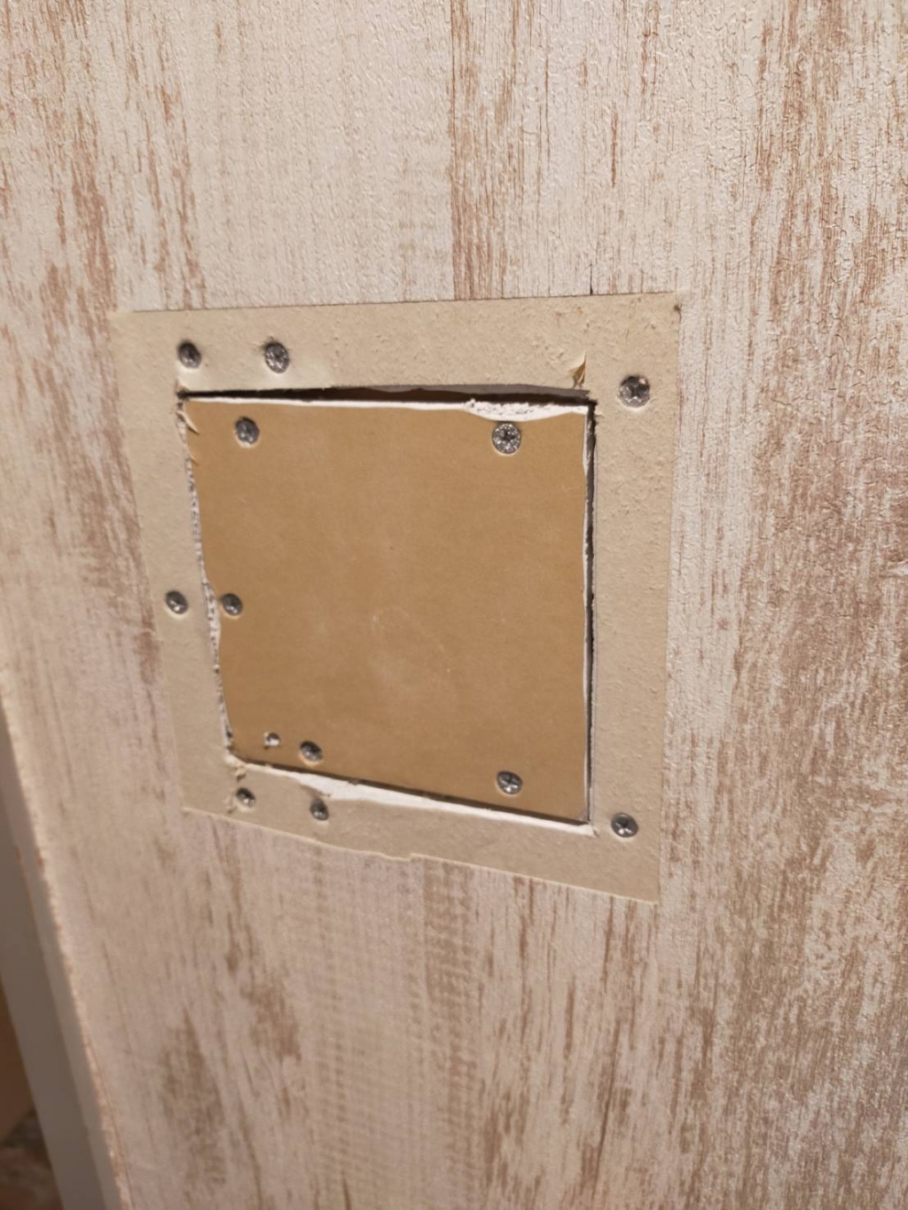 今回は壁面補修工事のご紹介です。 「うっかり家具をぶつけて壁に大きな穴が開いてしまった!」という事もあるかもしれません。 自力で補修するのは中々難しいですが、プロの手に掛かれば簡単に補修が可能です。 直径30cmくらいまでであれば補修跡がわからない程の仕上がりにできます。 目立つ場所の補修工事もお任せください!