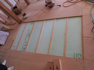 こんばんは、榎本です。 現在、栃木市K様邸のリフォーム工事を担当してます。 解体工事が終わり、床と壁と天井の修復をしています。 K様にご提案し、天井にも断熱材をバッチリ入れておきました。