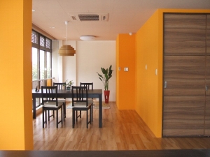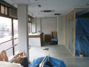 以前は学習塾で使用されていたようで、照明も床も少しさびしくうす暗い感じのする空間でした。今回の会社のイメージカラーがオレンジということでインパクトのあり少し温かみのある空間にしました。
