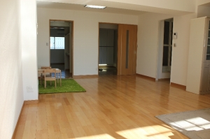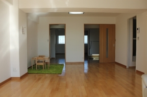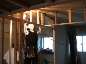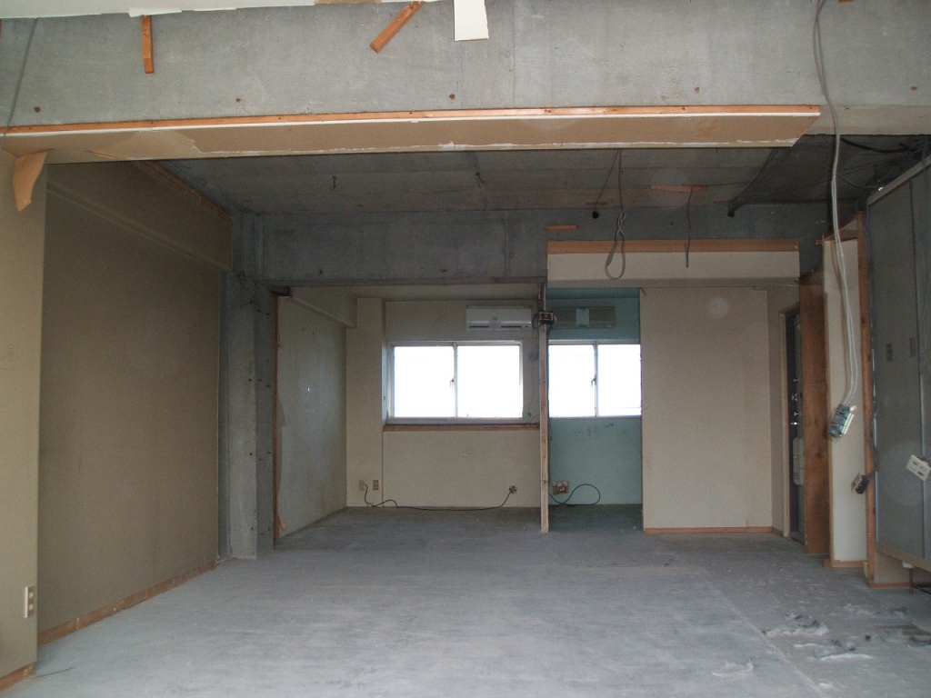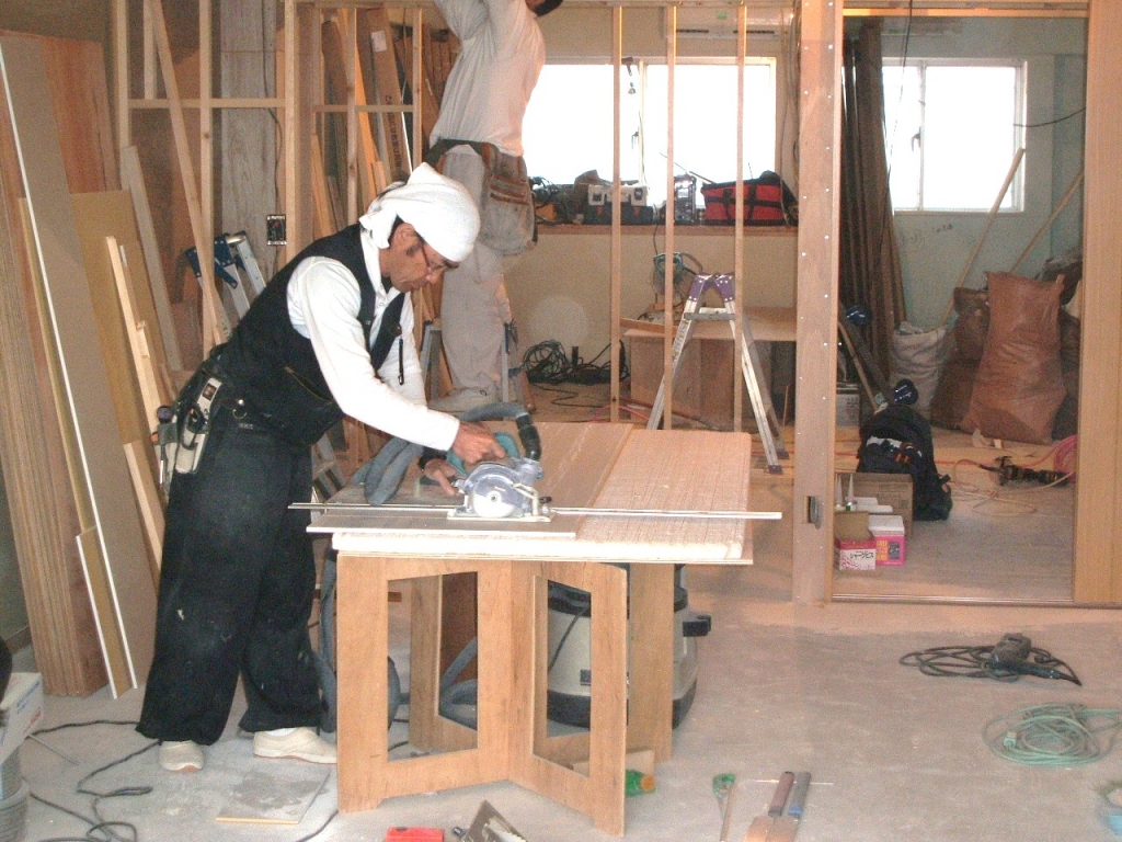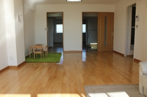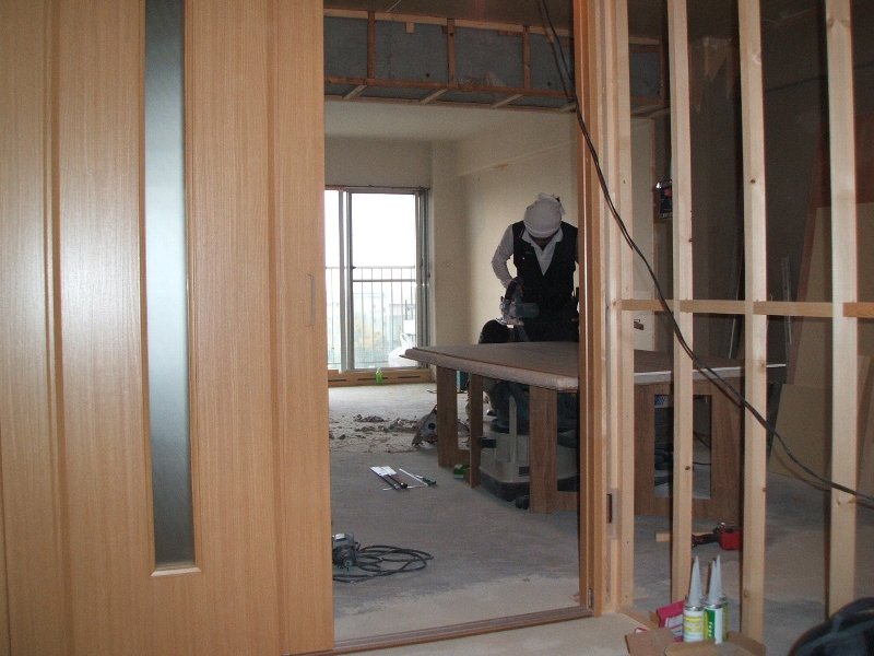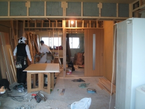 | 【工事費用】 | 380万円(仮住まいをお客様がしていただき間仕切り壁を壊してスケルトン状態から進めさせていただきましたので、非常に現場的には工事がしやすくありがたかったです。 解体後、お客様と現地で立ち会い今度新しくは壁になるラインを床に印をつけて確認しあいながら進めさせていただきました。) |