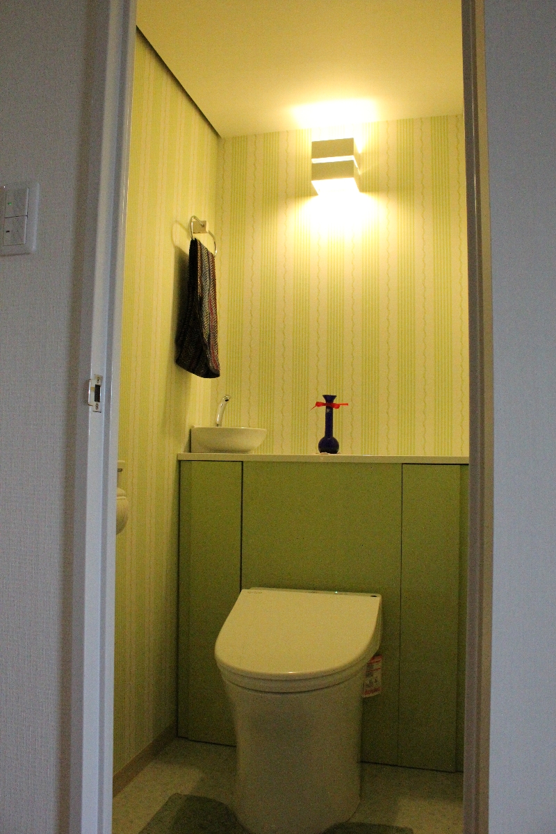 トイレの扉の柄が鮮やかなグリーン。