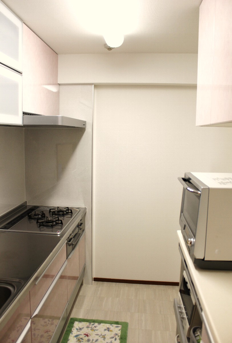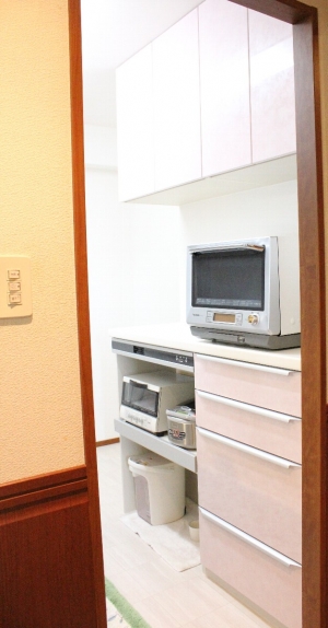 キッチンではお気に入りのムーブダウン式の食器収納庫が収まらないため、