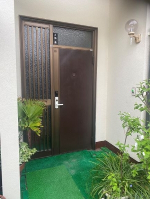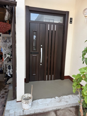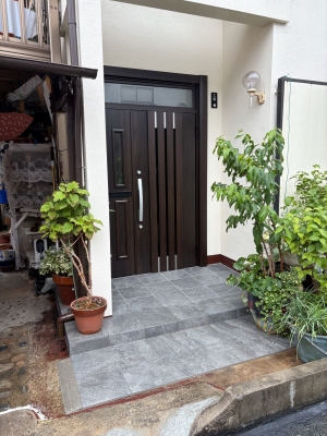 玄関からの隙間風が気になる。部屋が寒いとのご相談から玄関取替になりました。断熱目的の取替でしたが大きな荷物も入りやすくなりました。