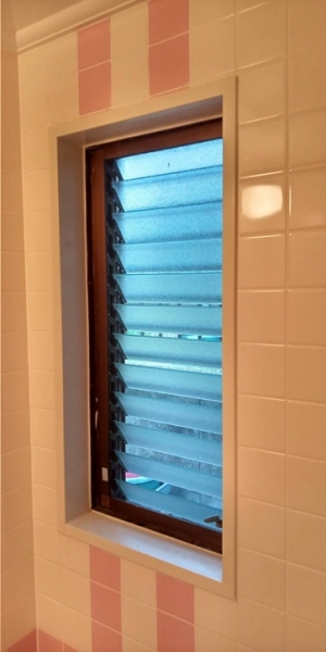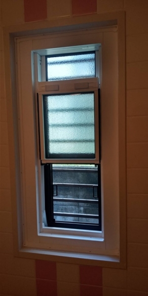 お風呂の窓の改修工事でした!オペレーター付のルーバー窓から上げ下げ窓へ、上げ下げ窓も補助金対象のサッシもあるので小窓タイプの場所にお勧めです!