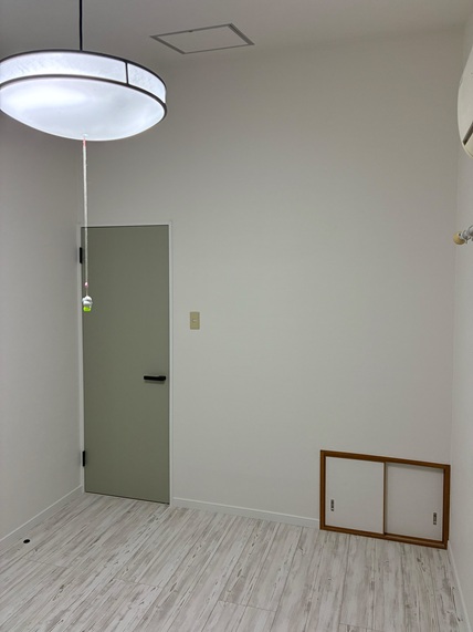 こんにちは!今回は洋室の改修になります。子どもさんが中学校に進学するタイミングで寝室を綺麗にしてあげたいということで片開きドア、床フローリングの改修、壁・天井の壁紙の張替えの内容で施工させていただきました。築年数の経過で内装の痛みや使い勝手がとても悪くなっていたドアと床はLIXIL建材ラシッサシリーズを使用しました。 ドアはノースフォレストシリーズのセージグリーン、マット調の薄緑で優しい雰囲気を醸し出します。床も独特なデザインのホワイトペイント色で明るい調和のとれた室内空間に生まれ変わりました!完成して家具をレイアウトするのが楽しみ!とのことです、喜んで頂けて幸いです!