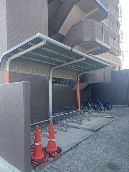 こんにちは、いつも施工事例のほう見て頂きましてありがとうございます。今回はマンション塗装工事の際足場で自転車置き場の屋根を破損してしまったとのことでヨドの自転車置き場の屋根修繕を施工させていただいた現場の施工事例になります。 よく公共施設やスーパーの駐車場で採用されているタイプの駐輪場です。屋根のみの交換でしたが無事綺麗に完了して一安心でした♪