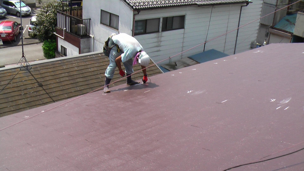 施工前に屋根塗装をお勧め致します。パネル設置後は塗装が出来ない為です