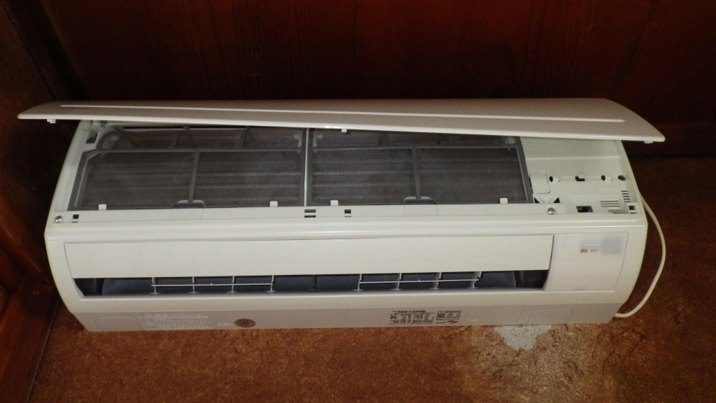 エアコン 分解清掃になります 全面パネルと送風ファンを外し徹底的にきれいにします