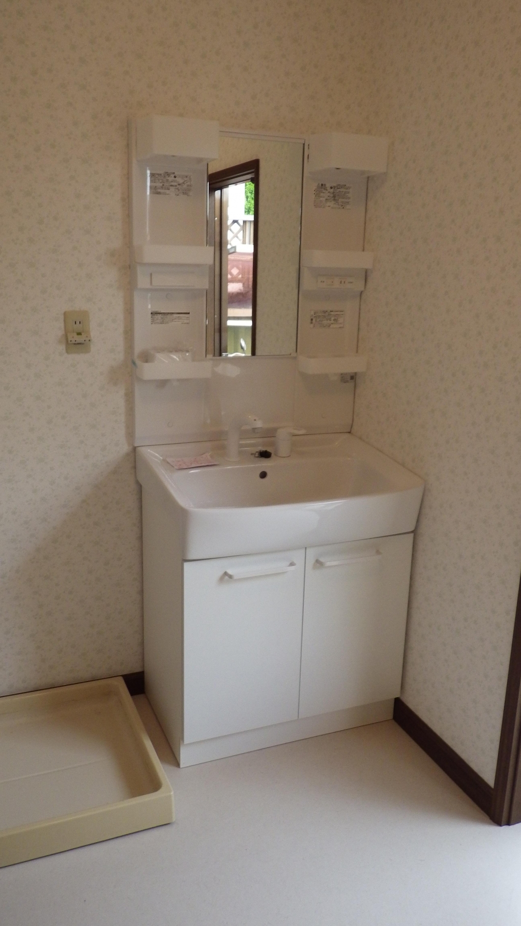 | 【使用材料】 | クリナップ はいろ 1616サイズ 洗面化粧台 イナックス D7N2-755S/VS1W ・ MD7X-751YU クロス・クッションフロアー(量産品) サッシ・YKK エイピアルーバーシール付き |