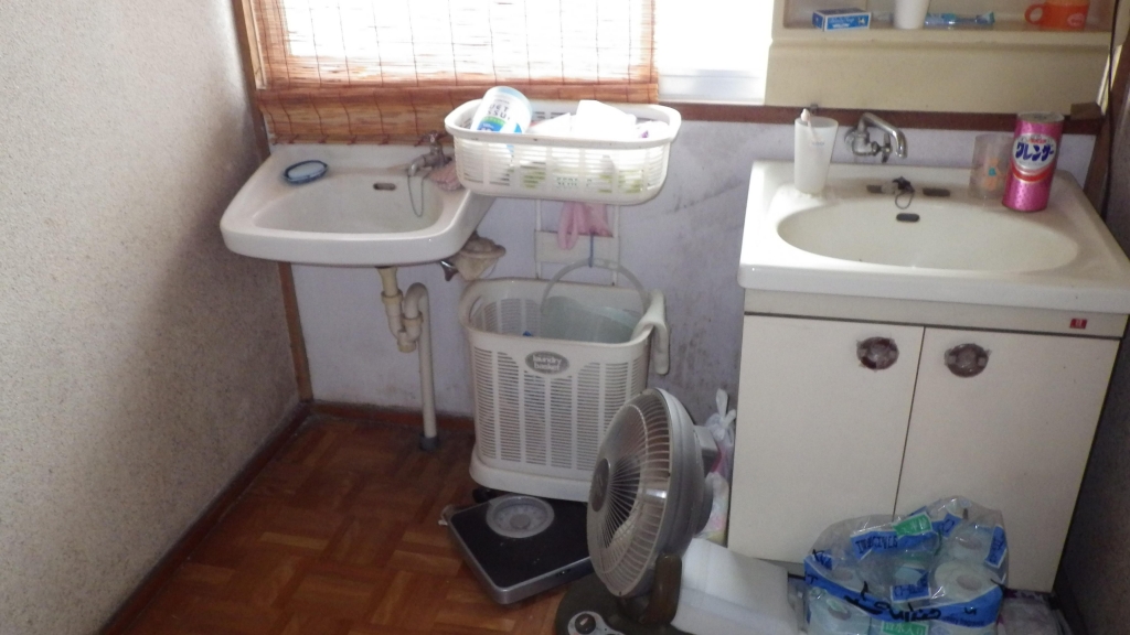 洗面所・トイレは以前の床はコンパネ1枚貼りにてブカブカしていましたが今回は2枚貼りをし丈夫な床になりました