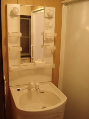 既存の洗面台にはなかった鏡の設置や温水機能が付いた為