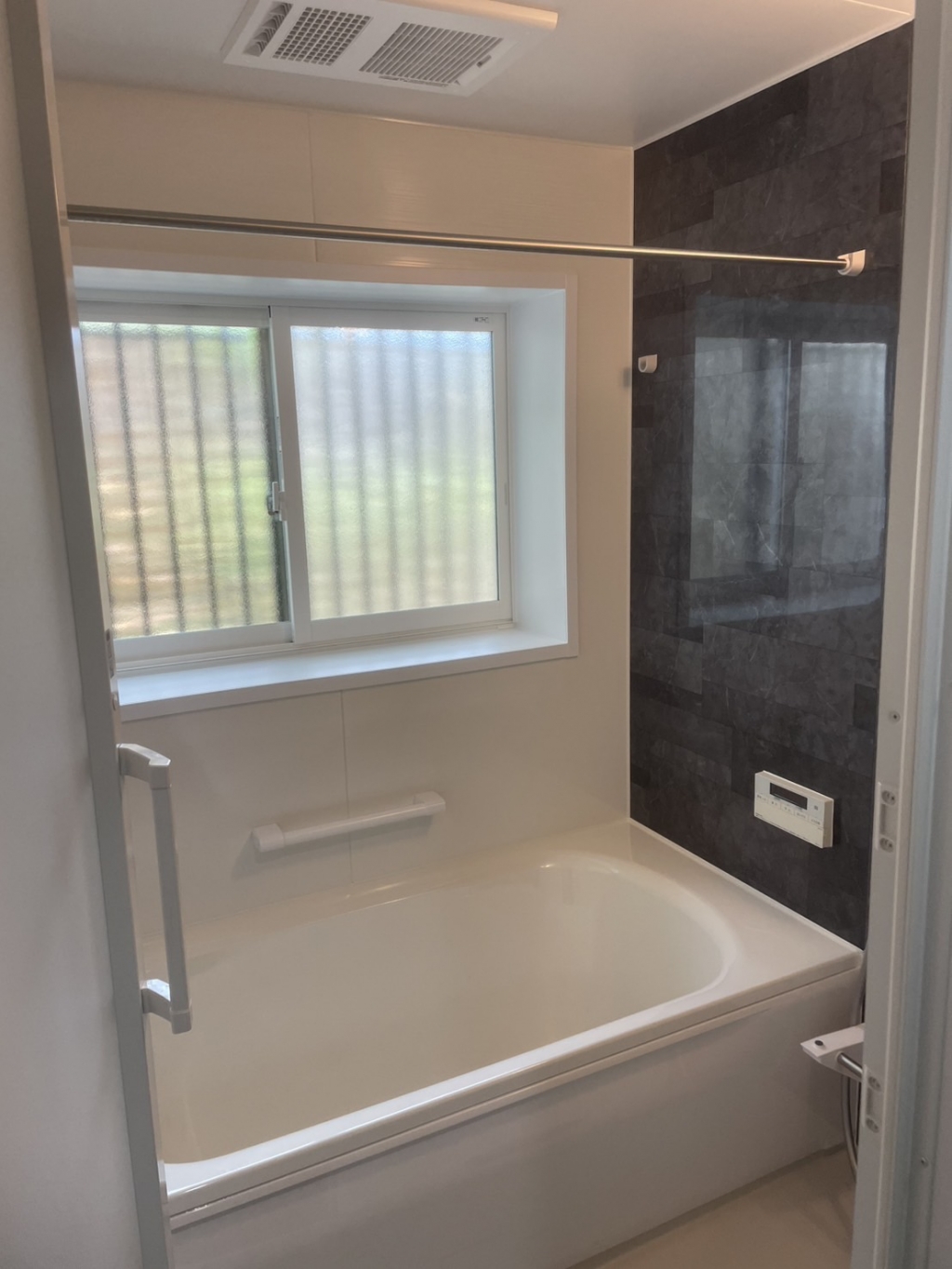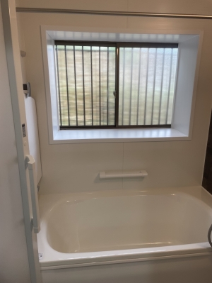 タイル貼りの浴室から高断熱浴槽、浴室乾燥機、節湯水栓、インプラスを採用した浴室にリフォーム致しました。