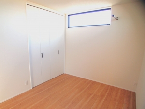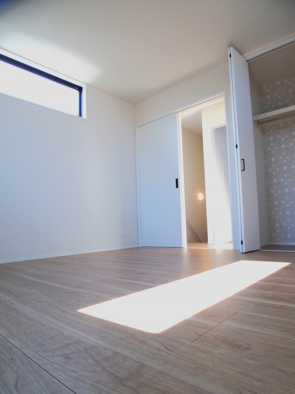 西側の部屋にもクローゼットを設置 大きい窓ではなく天井に近い部分窓にすることで、西日が入ってきてもきつくならないように配慮しました