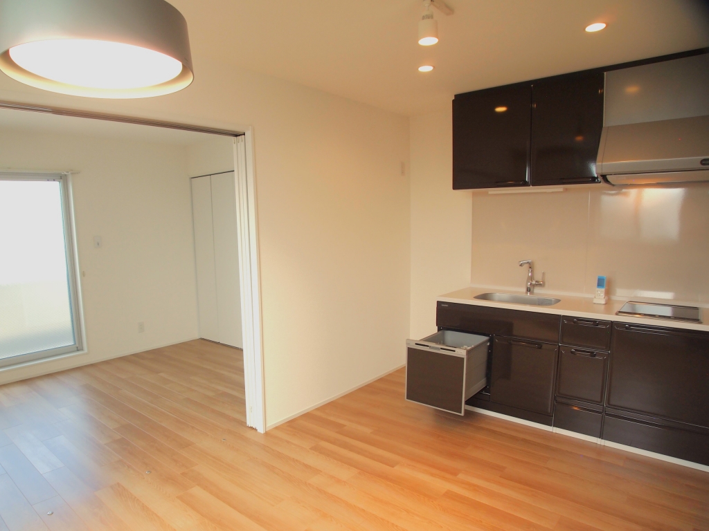 リビングダイニングキッチンは勿論IHコンロ完備の食器洗浄乾燥機付き 301号室は家族3人位までなら住める広さとなっております