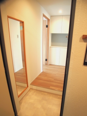玄関を上がって突き当りに飾り棚があるのが301号室の特徴