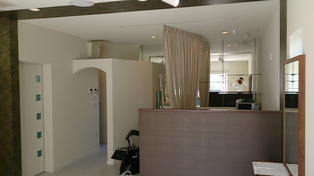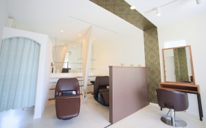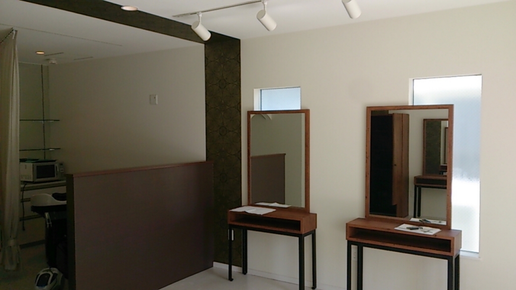 美容室にお客様が来ていただいたときに、カットスペースとヘッドスパやシャンプー時に店内との空間を大きな仕切り壁なしで、落ち着いた空間にすることでリラックスできるように考えました。