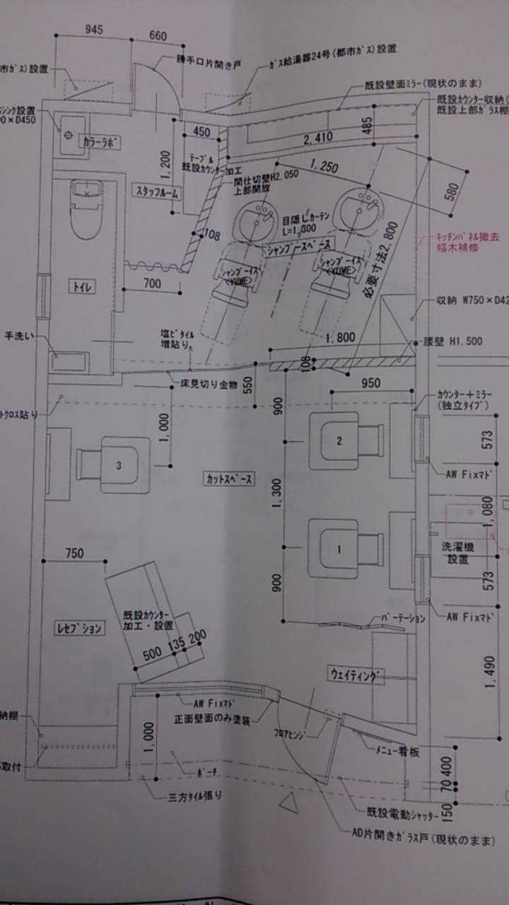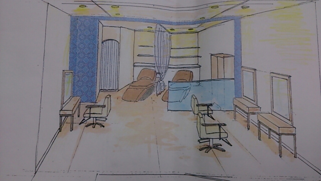 美容室の運営をスタイリスト2名でしていくとのことで、カット台3台とシャンプー台2台を設置できないといけませんでした。